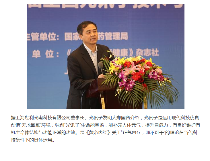 会上一个个精彩的发言不时赢来一阵阵热烈的掌声。这次研讨会既是"光讯子"的学术研讨,也是"光讯子启能灯"即将正式走向家庭保健市场的一个思想交流会。