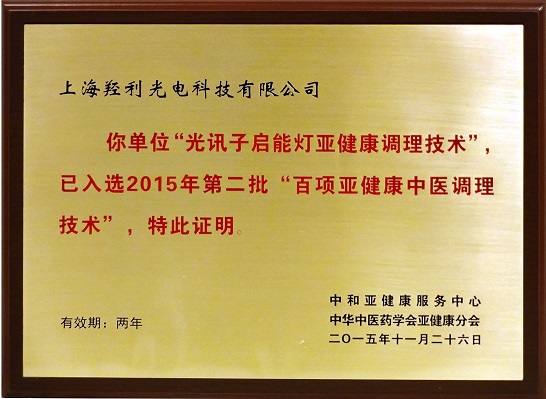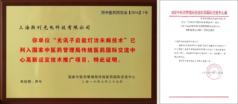 列入国家中医药管理局对外高新项目——光讯子治未病技术