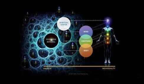 因此,人的灵体和肉体是同一件事,同属一渐层连续体的两端,正如是与非、善与恶、快乐与痛苦本质并无不同,分别只在于能量振动有所差异。